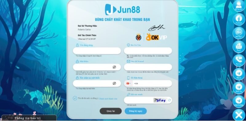 Nếu bạn chưa có tài khoản tại Jun88, hãy thực hiện đăng ký theo các bước sau: