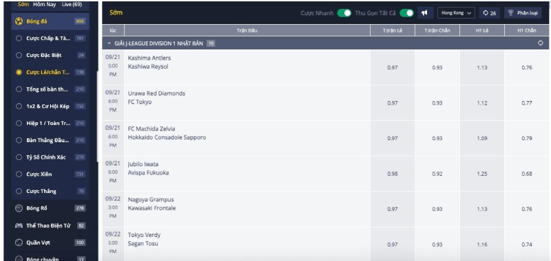 - Kèo chẵn/lẻ: Đặt cược vào tổng số bàn thắng của trận đấu là số Chẵn hay Lẻ.