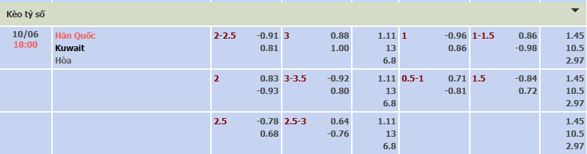 Với tỷ lệ tài xỉu 2.5-3 thì người chơi nên tin tưởng vào khả năng Over dựa trên sức mạnh tấn công của Hàn Quốc và hàng thủ yếu kém của Kuwait.