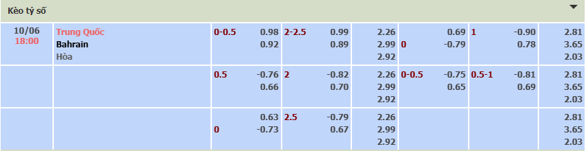 Dự đoán tỷ số: Trung Quốc 1-1 Bahrain (với lý do cả hai đội đều thiếu động lực và có xu hướng cân bằng trong lịch sử)
