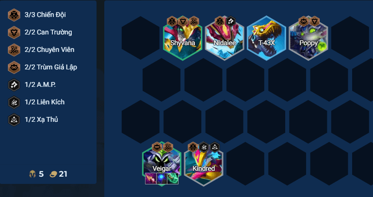 Hợp Kim Sáng Loáng: Khi nâng các tướng Chiến Đội lên 3 sao, họ nhận thêm 15% Sức Mạnh Công Kích, 20 Sức Mạnh Phép Thuật và 10 Vàng. Nhận được 1 Kindred và 1 Nidalee.
