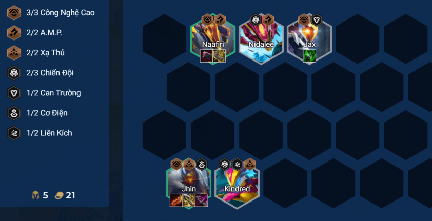 - Nếu chọn reroll, giữ cấp 5 và nâng Jax, Jhin, Naafiri lên 3 sao