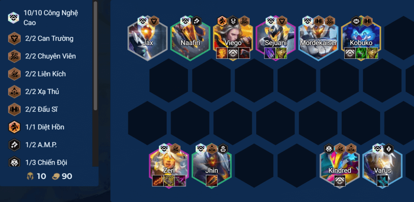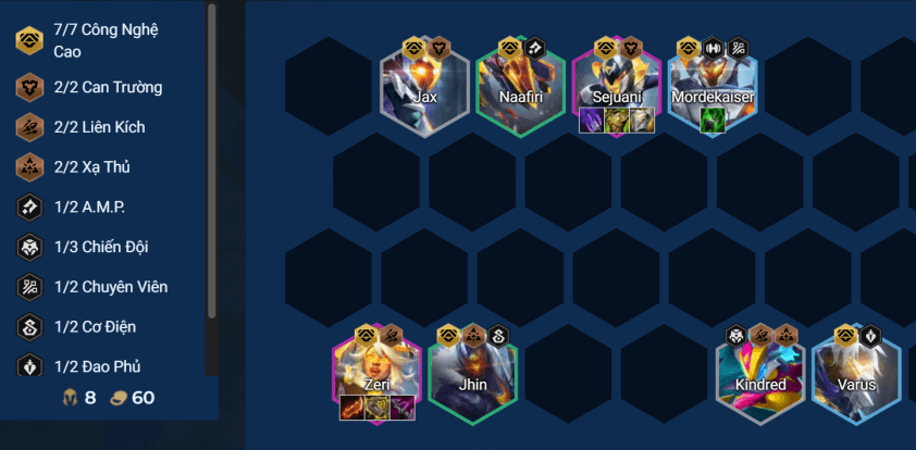 Đội hình Công Nghệ Cao là lựa chọn lý tưởng cho những ai thích chiến thuật reroll hơn là Fast 8. Trong hướng dẫn này, chúng tôi sẽ chỉ bạn cách xây dựng đội hình cơ bản xoay quanh Zeri ở cuối trận, tập trung vào sát thương vật lý. Nếu cần, bạn có thể thay Kindred bằng Viego để bổ sung sát thương phép và tối ưu hóa trang bị. Với 3 ấn, bạn có thể đạt mốc 10 cực mạnh.
