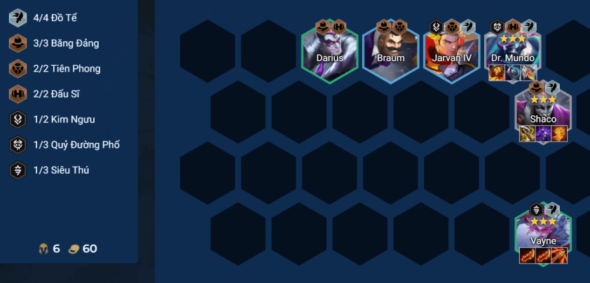 • Tiếp tục reroll Vayne 3 sao ở cấp 6